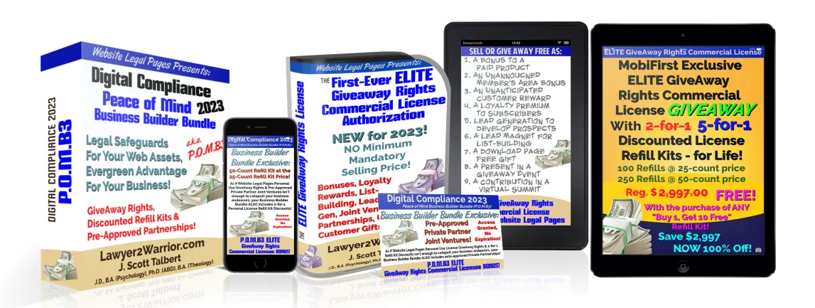 Use any or all of the Compliance Documents on ALL of your own websites. Sell them to your clients/customers at ANY price you decide. Give them away for contests, list building, loyalty rewards, or just about anything else you can think of.